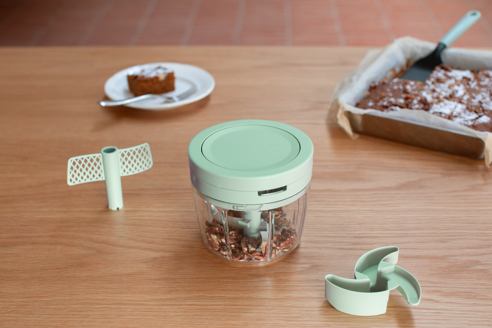 چاقو را بگذارید، خردکن دستی Brabantia Tasty+ برای خرد کردن پیاز، هویج یا آجیل طراحی شده است! این خردکن آسان برای استفاده، سه تیغه تیز از جنس استیل ضد زنگ دارد که با کشیدن حلقه میچرخند و به راحتی حتی سختترین غذاها را هم خرد میکنند. این یاور آشپزخانه حتی یک دیسک همزن برای هم زدن خامه، مخلوط کردن سسها یا هم زدن تخممرغ در یک چشم به هم زدن دارد.