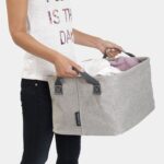 این سبد رختشویی تاشو برابانتیا Brabantia میتواند حجم زیادی از لباسهای خیس ( مرطوب ) یا خشک را در خود جای دهد، اما خودش فضای زیادی اشغال نمیکند. در عرض یک ثانیه تا میشود، تمیز کردنش آسان است و همچنین میتواند به عنوان جعبه نگهداری کاغذ یا اسباببازی استفاده شود. تاشو و دوستداشتنی!